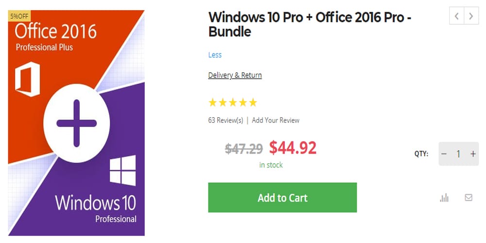 Goodoffer24, ürünleri birlikte satın almak isteyenler için de çeşitli Bundle paketleri sunuyor. Bu noktada Windows 10 + Office 2016 yazılımlarını birlikte almak isterseniz 44 Dolar yani 240₺ ödemeniz gerekiyor. Toplamda sekiz Dolar tutarında bir kar elde etmiş oluyorsunuz.