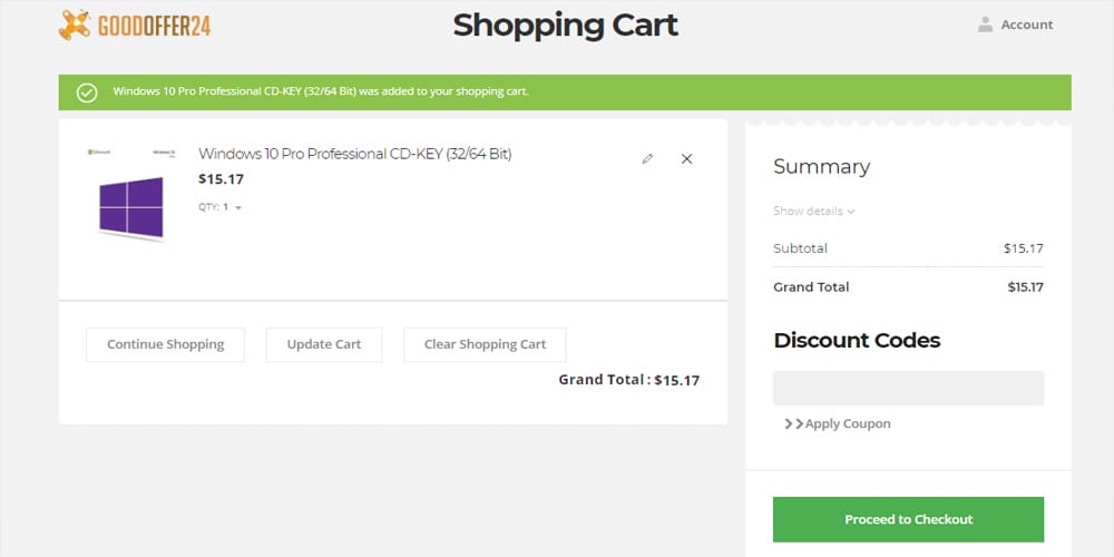 Goodoffer24, bahsettiğimiz gibi uygun fiyatlı yazılımları bizlere sunan bir platform. Yukarıdaki örnekte Microsoft'un resmi sitesi üzerinde 1299₺ fiyat etiketli bir Windows 10 sürümünden bahsettik. Aynı ürünün Goodoffer24 üzerindeki satış fiyatı ise 15$ yani 82₺. Üstelik bu sürüm, 32-64 Bit ile geldiği gibi çeşitli geliştirmelere sahip Professional sürümden oluşuyor.