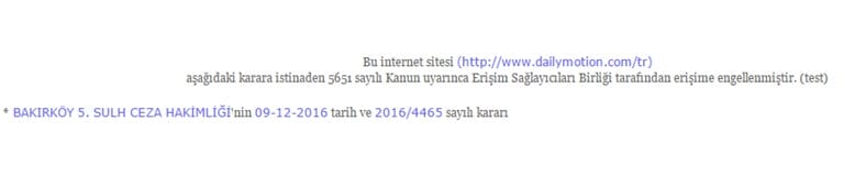Hala konu hakkında neden engellendiği konusunda resmi bir açıklama yapılmadığı gibi, TR adresine erişim gerçekleştirilemiyor. Fakat Almanya uzantısı olan dailymotion.de ve Fransa uzantısı olan dailymotion.fr adreslerine ulaşım sağlanabiliyor. Eğer iddialar doğruysa o videoların Dailymotion web sitesinden kaldırılması için mahkeme kararı çıkartılabilir. Asıl neden ortaya çıkana kadar şuan en sağlıklısı beklemek olacak.