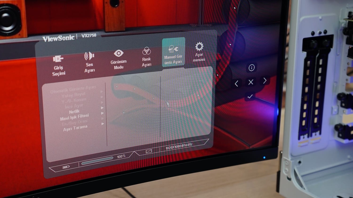 ViewSonic VX2758PC-MH, yine güncel oyuncu monitörlerinde olduğu gibi kavisli bir ekran yapısı ile geliyor. 1800 Radyanlık bu kavis, pratikte oyunculara 178 derecelik bir görüş açısı sunuyor ve ekran bütününe olan hakimiyeti biraz daha arttırıyor. Kavis, ne çok fazla ne de çok az. Dolayısı ile varlığı ile yokluğu yanlardan bakılmadığı sürece çok belli olmasa da kullanım bazında faydası gerçekten fark yaratıyor.
