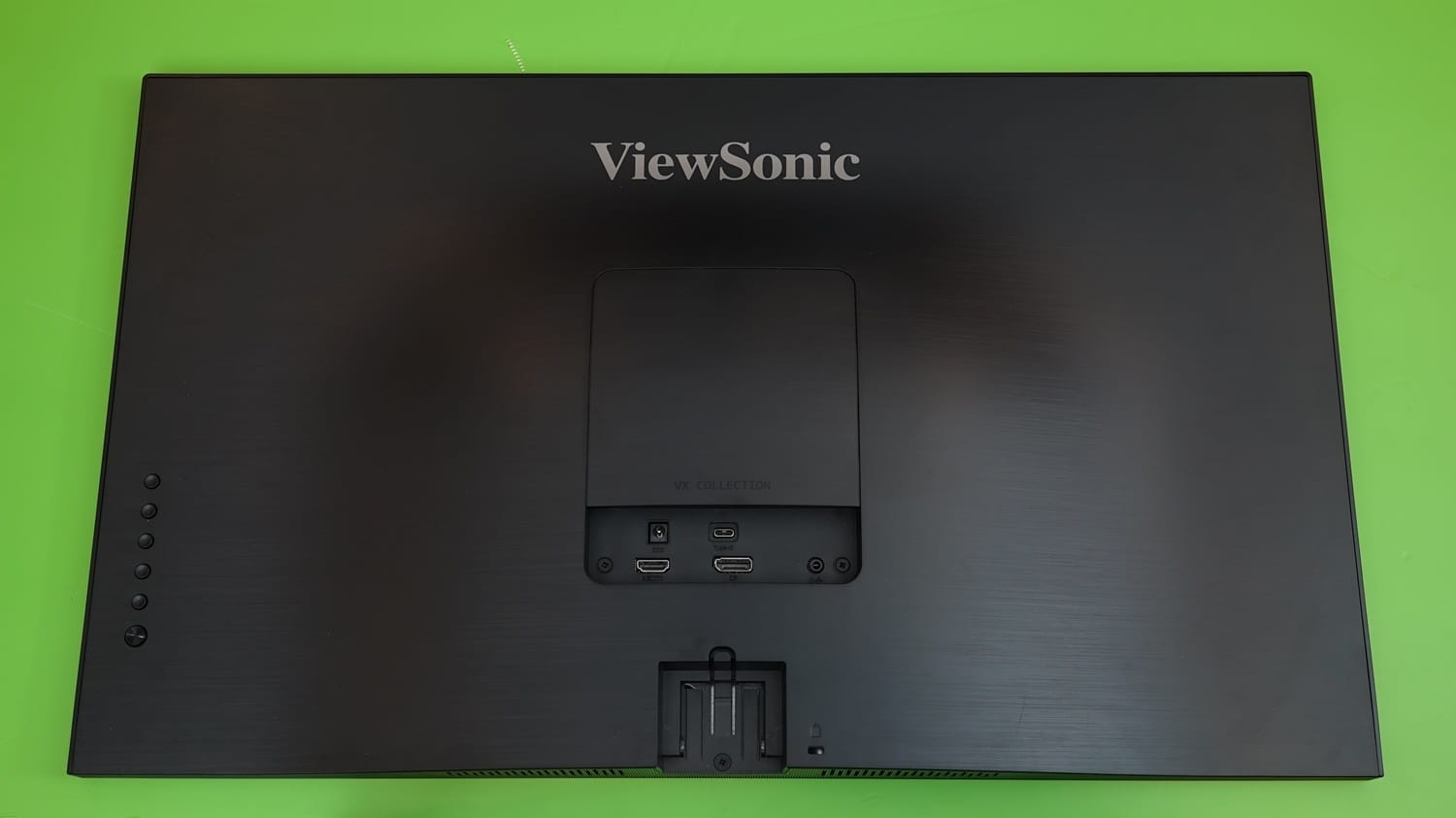 ViewSonic VX2785-MHDU, son derece sade ve şık tasarlanmış bir monitör. Mat siyah rengi ile dikkat çeken ürün, ince çerçeveleri ile göze hitap eden bir yapı sunuyor. Ekran boyutu 27" inç olan panel, kavisli değil tamamen düz bir yapıda. Monitörün arkasını çevirdiğimizde ise kavisli bir yapı görüyoruz. Üst bölümde ViewSonic logosu, altında giriş çıkış portları ve sol bölümde de arayüz kontrol düğmeleri konumlandırılmış.