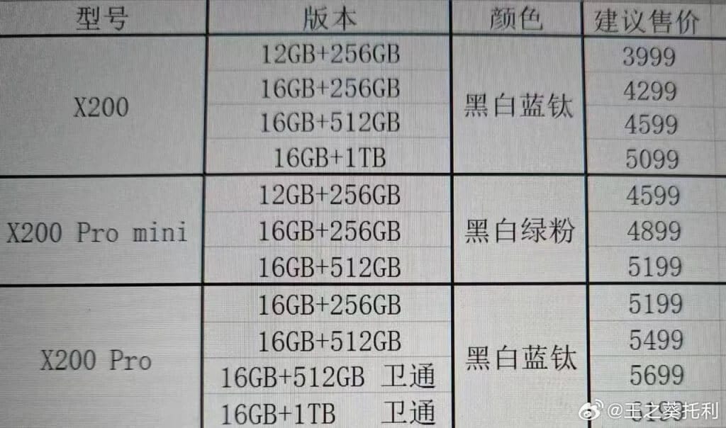 X200 Pro Mini Modellerinin Fiyatları;