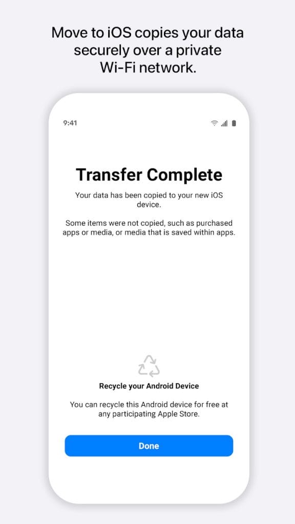 Kullanıma sunulan özellik Apple'ın, Google Play Store'da bulunan "iOS'a Taşı" uygulaması aracılığıyla yapılıyor. Bu işlem sırasında hem eski Android cihazınız hem de yeni iOS cihazınızın aynı Wi-Fi ağına bağlı olması gerekirken aktarım sırasında problem yaşanmaması için her iki cihazında şarja bağlı olması da önemli.