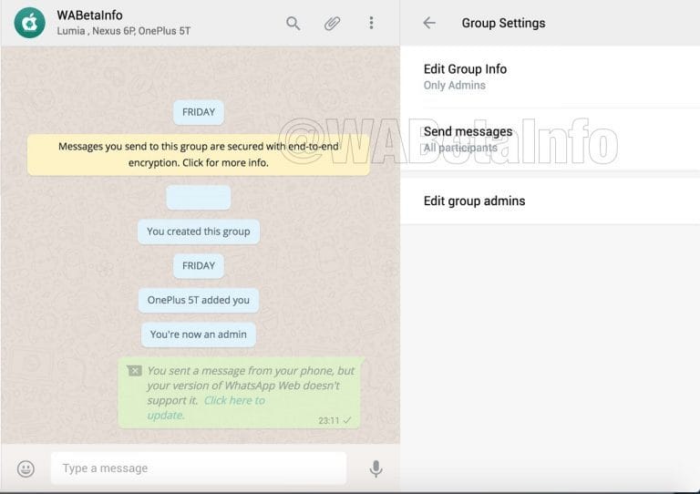 Son zamanlarda grup yöneticilerine bazı yenilikler ve yetkiler sunulmuştu. Daha önceden WhatsApp'ta bir grupta yönetici olduğunuzda üye alma - çıkarma ve grup ismi ile alakalı düzenlemeler yapılabiliyordu. Yetkiler böyle sınırlı olunca grup yöneticisinin pek bi önemi kalmıyor.