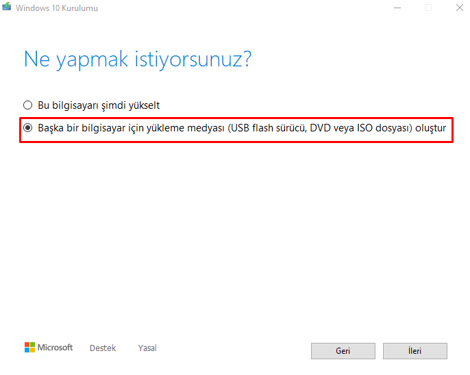 Windows 10 dosyasını indirdikten sonraki indirme aracı ile işimiz bitiyor. Bu noktadan sonra USB belleğimize Disk görüntümüzü (