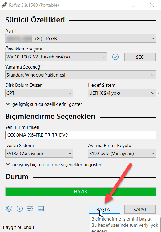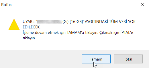 Rufus programında şu ayarı yapmamız gerekiyor.