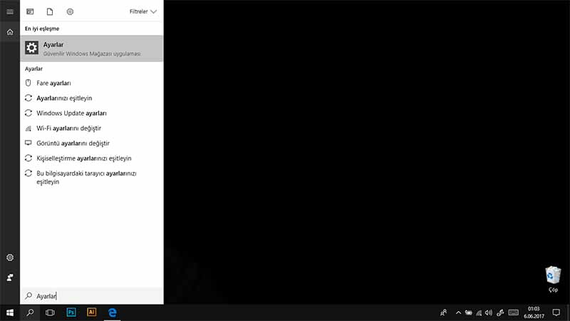 1)İlk olarak "Ayarlar" sekmesini açıyoruz.
