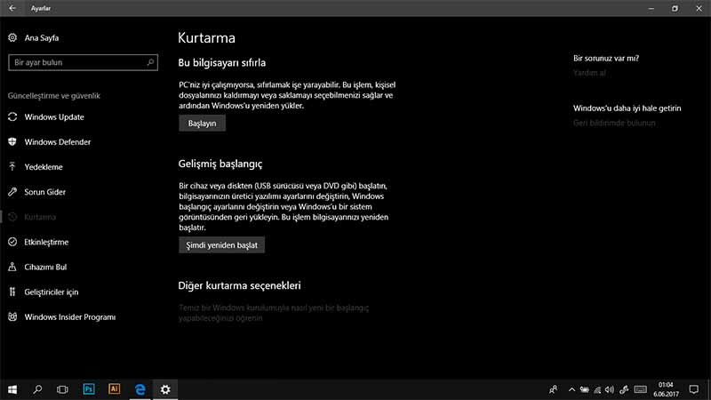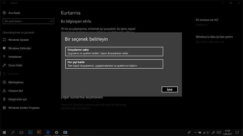 Ancak bu işlem birazdan çok daha basit bir hal alacak.İstersek dosyalarımızı saklayabiliriz yadatemiz kurulum dediğimiz komple sıfırlayıp en baştan kurabiliriz.