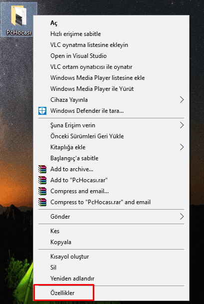 İlk olarak ev sahibi olan bilgisayarda ağ sürücüsü yapmak istediğiniz klasöre(dilerseniz bir sürücüye) sağ tıklayarak özellikler kısmına girin.