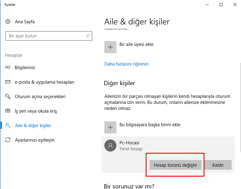 Makaleyi uygulamanın risk teşkil ettiğini burada belirteyim. Sonuçta şimdiye kadar kurduğunuz programlar & oyunlar kullanıcı adınızı içeren bir dizindeyse işlemlerde hata yapılırsa daha sonra bilgisayarınızın stabil çalışması bozulabilir. Riski göze almıyorsanız işlemleri uygulamayın! Aşağıdaki işlemleri yerel hesabımda gerçekleştireceğim. Eğer Microsofta uyarlayamam birebir olsun derseniz Ayarlar'a giderek hesabınızı Yerel Hesaba dönüştürün.