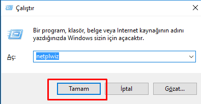 Çalıştırı açın ve netplwiz yazın.