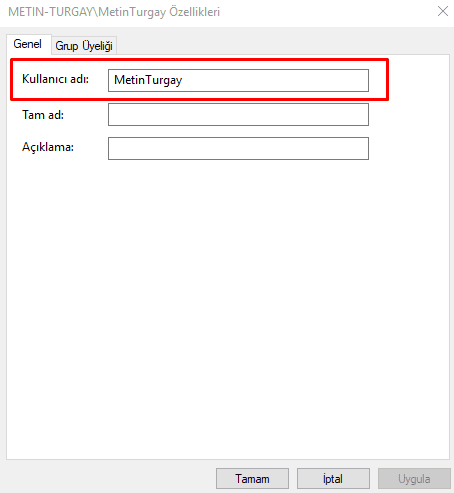 Burada hala kullanıcı adınızın değişmediğini görecekseniz, buda görev yöneticisinde de değişmediği anlamına geliyor.