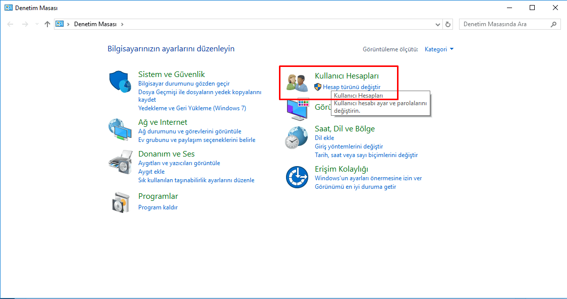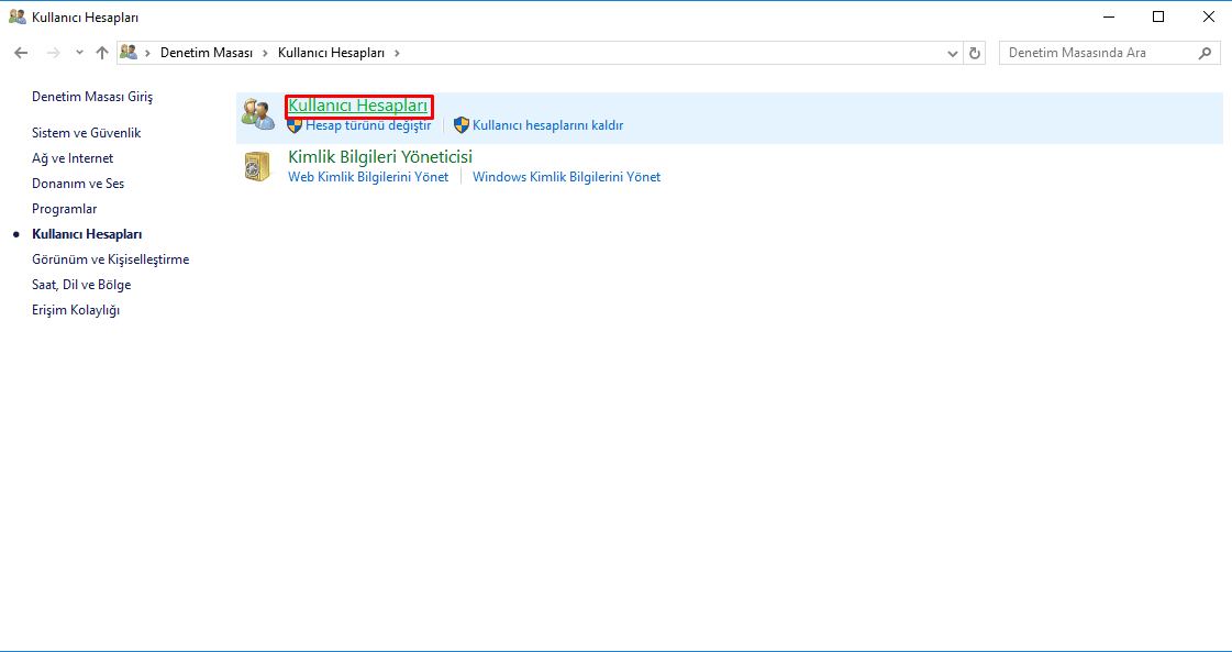 Denetim masasını açtıktan sonra aşağıdaki resimleri takip edin.