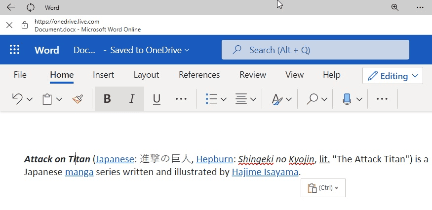 Yukarıdaki ekran görüntüsünde görebileceğiniz üzere, Windows 10 panosu şu anda Wikipedia gibi bir siteden metin yapıştırdığınız zaman biçimlendirmeyi (bağlantıları, yazı tiplerini, farklı dilleri, sayıları, tabloları ve adresleri tanıyabilir) koruyabiliyor. Windows 10 Sun Valley güncellemesi ile birlikte, Pano menüsünü (Win + V) açabilirsiniz ve kopyaladığınız herhangi bir biçimlendirme içeren bir şeyi yapıştırmaya çalıştığınızda "Metin olarak yapıştır" adlı yeni bir seçenek görebilirsiniz.