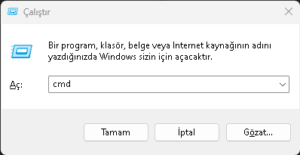 CMD'de kullanacağımız komut '