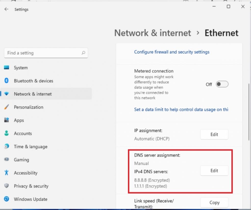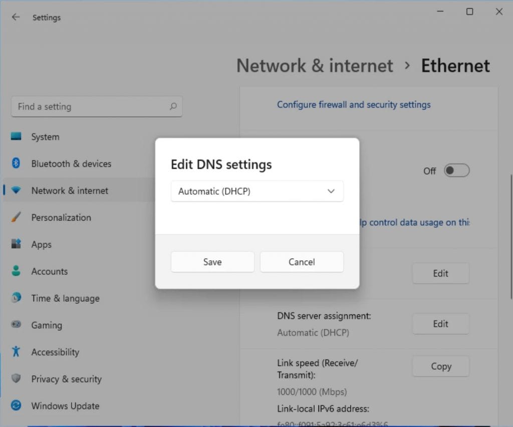 - DNS Sunucusu Ataması öğesinde Düzenle düğmesine tıklayın.