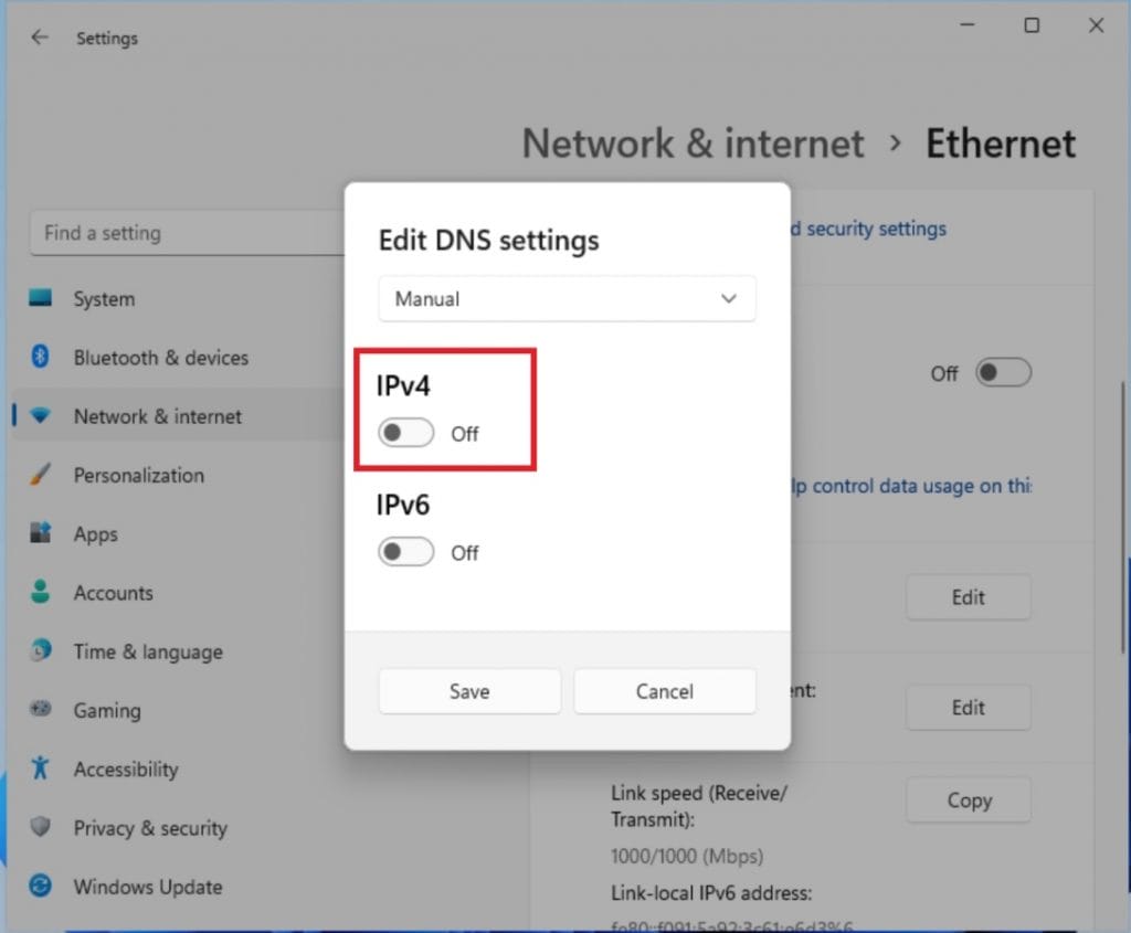- IPv4 seçeneğini aktif hale getirin.