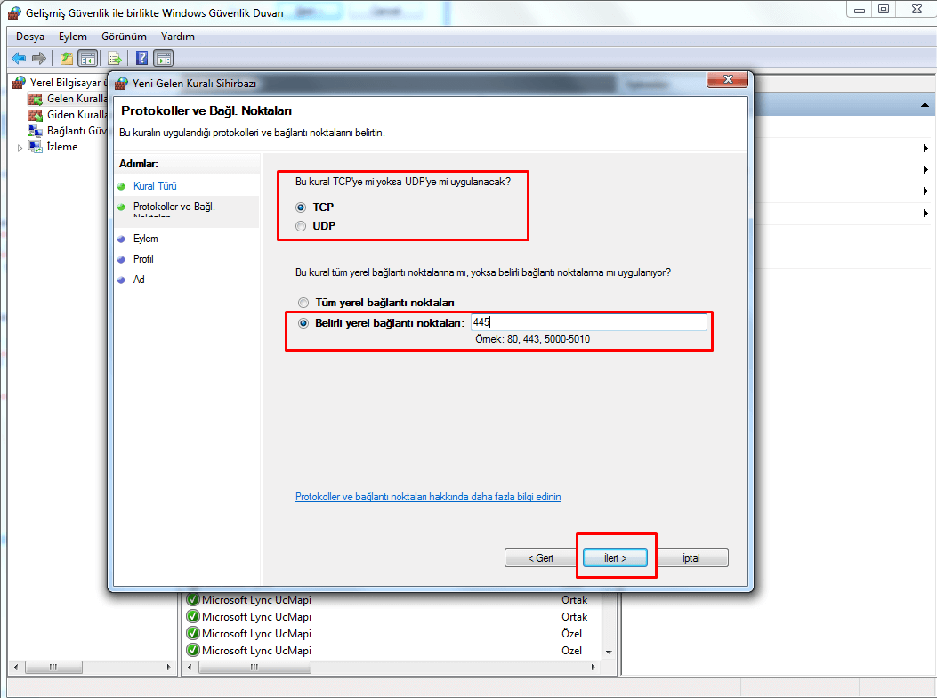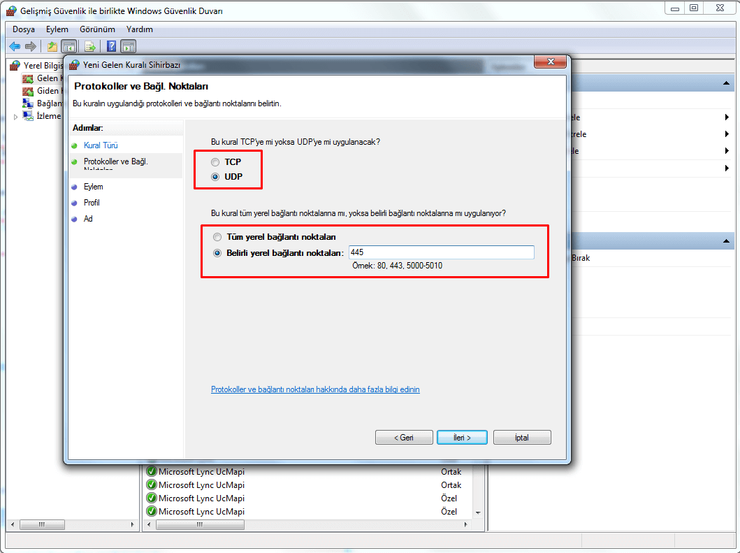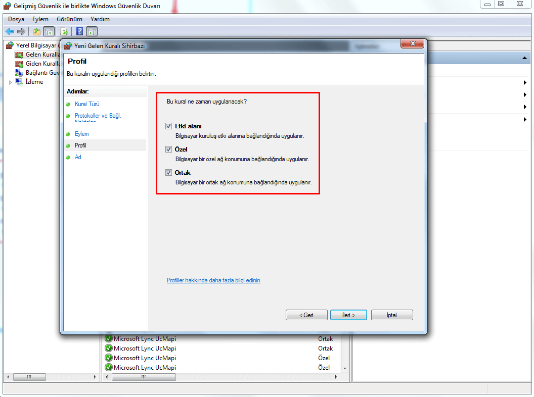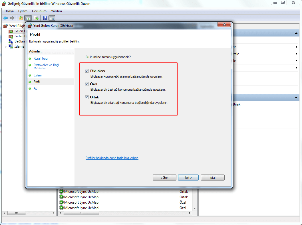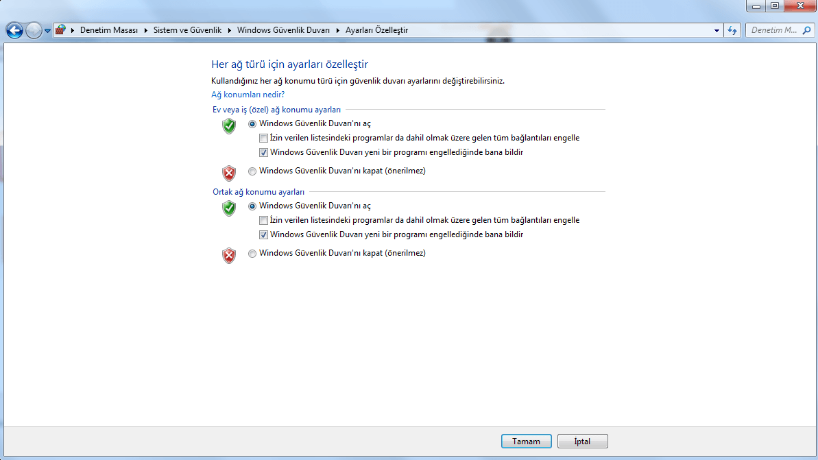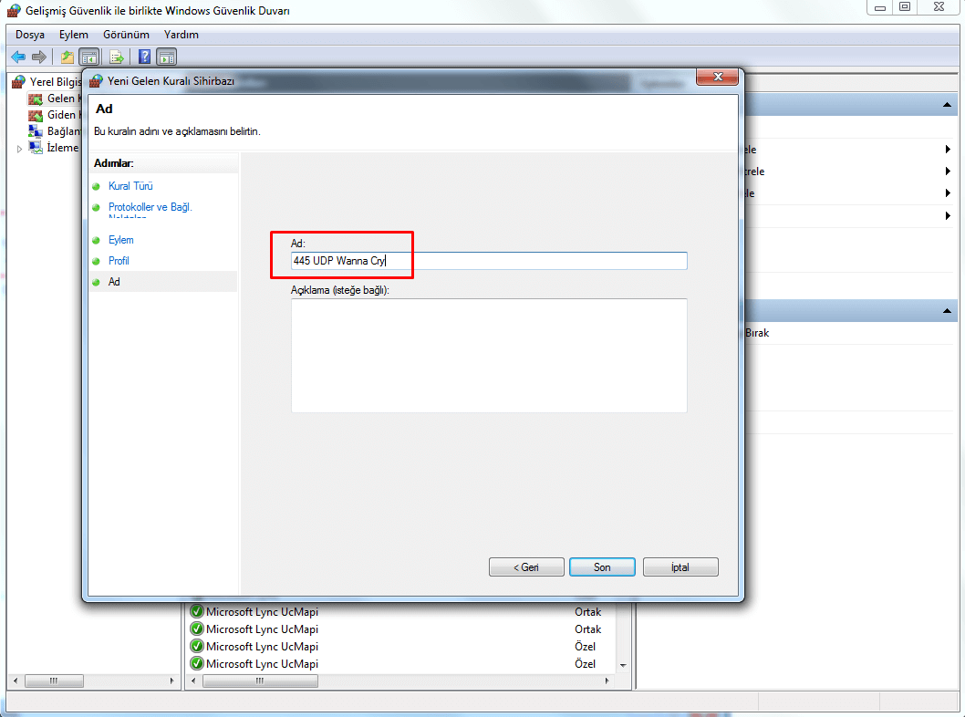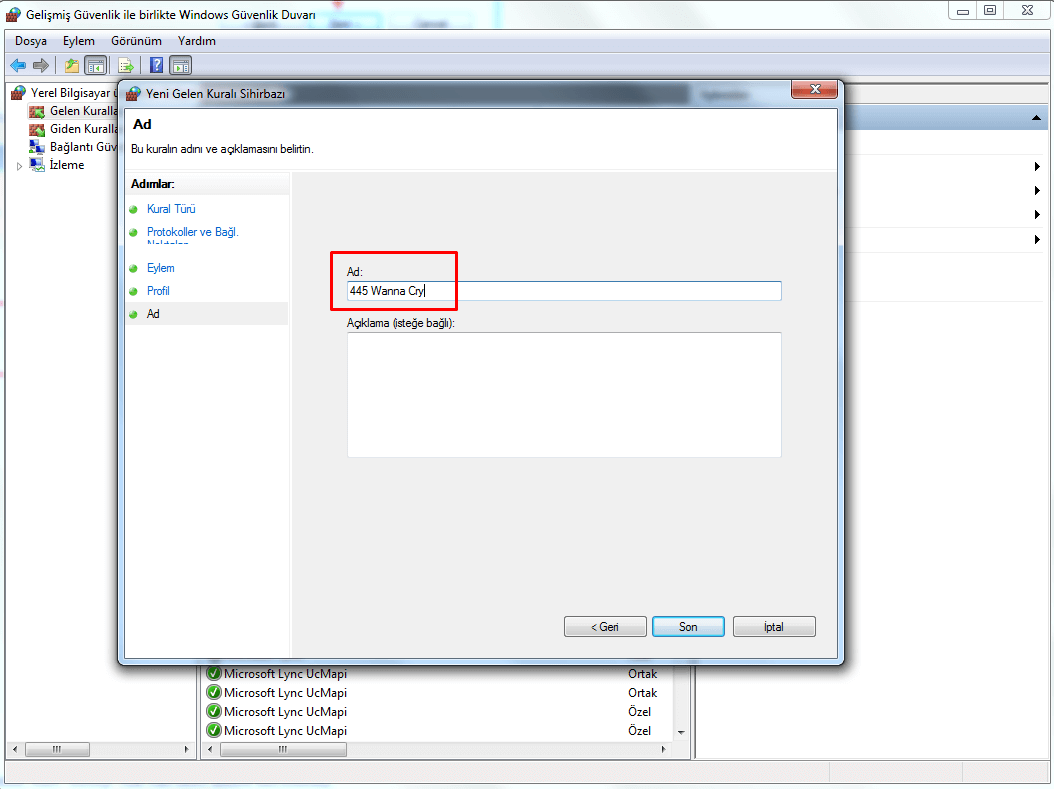 Aşağıdaki görselde eğer Windows Güvenlik Duvarınız açık değilse açmanızı ve aşağıdaki gibi işaretlemenizi tavsiye ediyoruz. Dün gelen Windows güncellemesinden sonra artık Wanna Cry için Windows tespitleri başlatıldı.