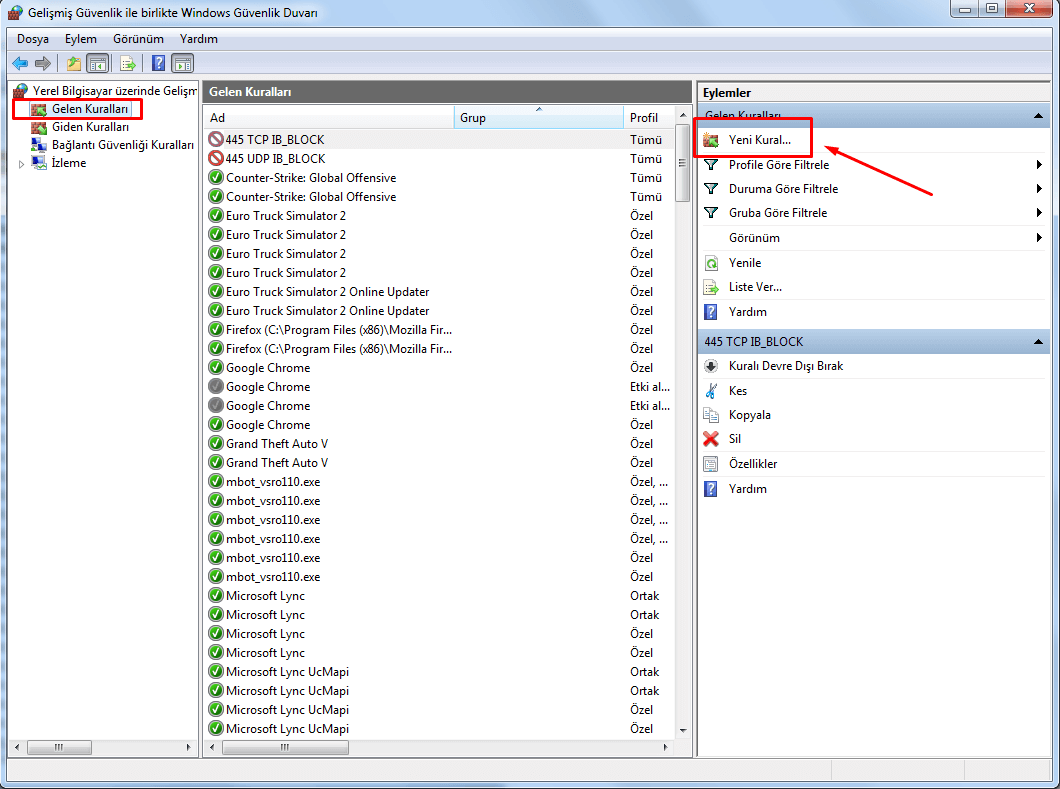 Şimdi bu bölümde toplamda iki adet 'yeni kural' tanımı yapacağız. İlki 445 TCP IB_Block ikincisi ise 445 UDP IB_Block şeklinde olacak. Bu işlemler manuel olarak yapılabildiği gibi, Driver Booster gibi programlar otomatik olarak işlemleri sizin yerinize yapabiliyor.