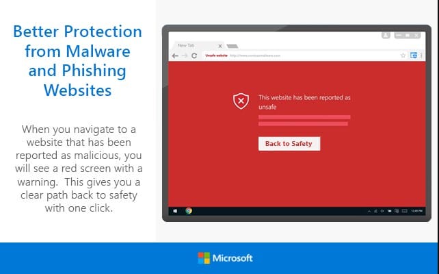 Uzantı, kötü amaçlı sitelerden gelen bilgisayarlara yüklenen kötü amaçlı yazılımları durdurmak ve e-postaların başarılı olmasını engellemek için yayınlandığı belirlendi.Google, halihazırda Chrome'daki kötü amaçlı bağlantılara karşı kendi korumalarını sağlamaktadır, dolayısıyla Microsoft'un eklenmesi gereksiz görünmektedir.