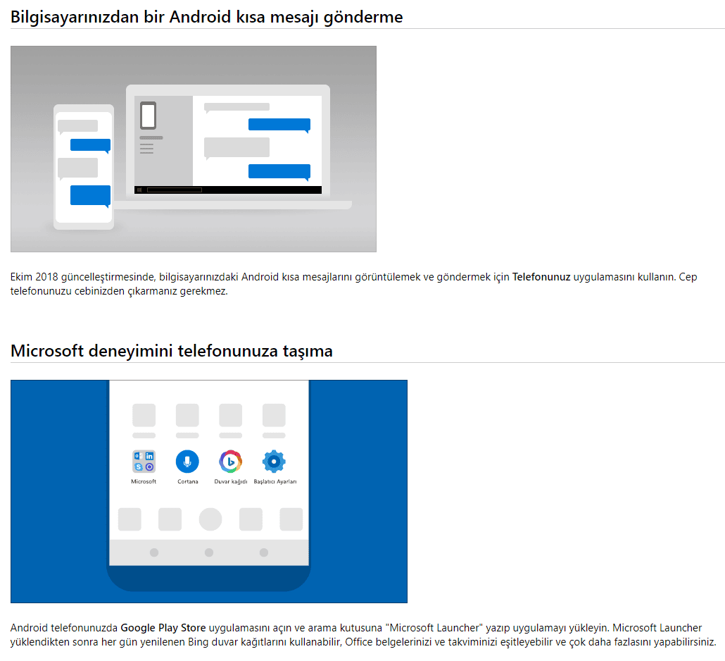 Yeni gelen güncellemeden sonra, Denetim Masası üzerinden "Neler Yeni?" seçeneğine tıkladığınızda, Microsoft web sitesi üzerinden hangi detayların geldiğini görebiliyorsunuz. Bu yenilikler arasında Android cihazlarınızı Masaüstü deneyimleriniz ile daha kolay birleştirebileceğiniz pek çok yenilik mevcut.