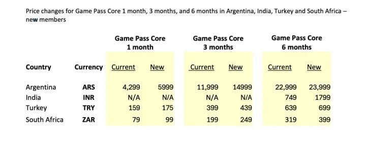 - Game Pass Core üyeliği: 159 TL'den 175 TL olarak güncellendi
