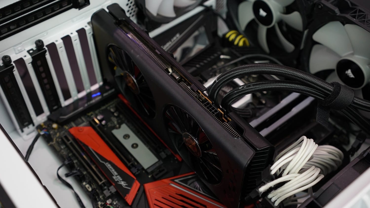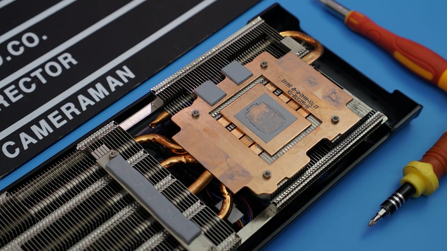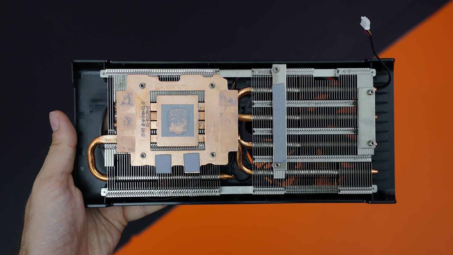 GPU'nun olduğu bölümde termal macun ve bobin ile bellekleri kapatan termal pedler de yer almış. GPU'nun tam üzerinde de yine bakır bir plaka bulunuyor. Isı boruları bu plakadan aldıkları ısıyı blokalara dağıtabiliyor.