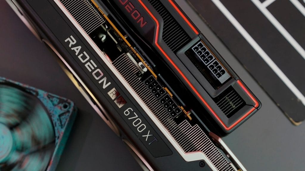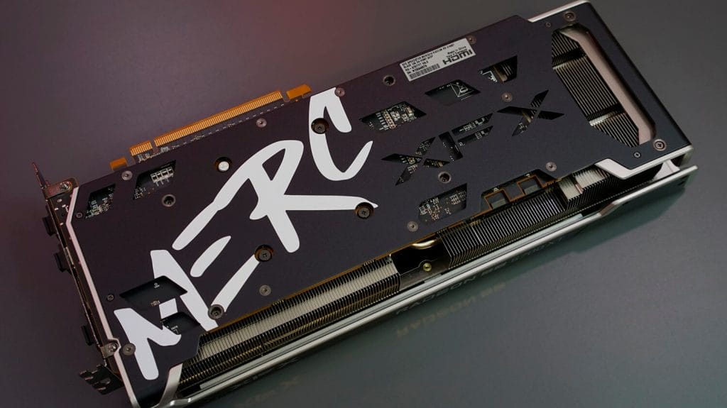 XFX RX 6700 XT, 12 GB’lık bir belleğe sahip. 3 fanlı yapıda ve 8+8 güç girişi bulunuyor. Arka tarafında da oldukça hoş duran bir backplate yer alıyor.