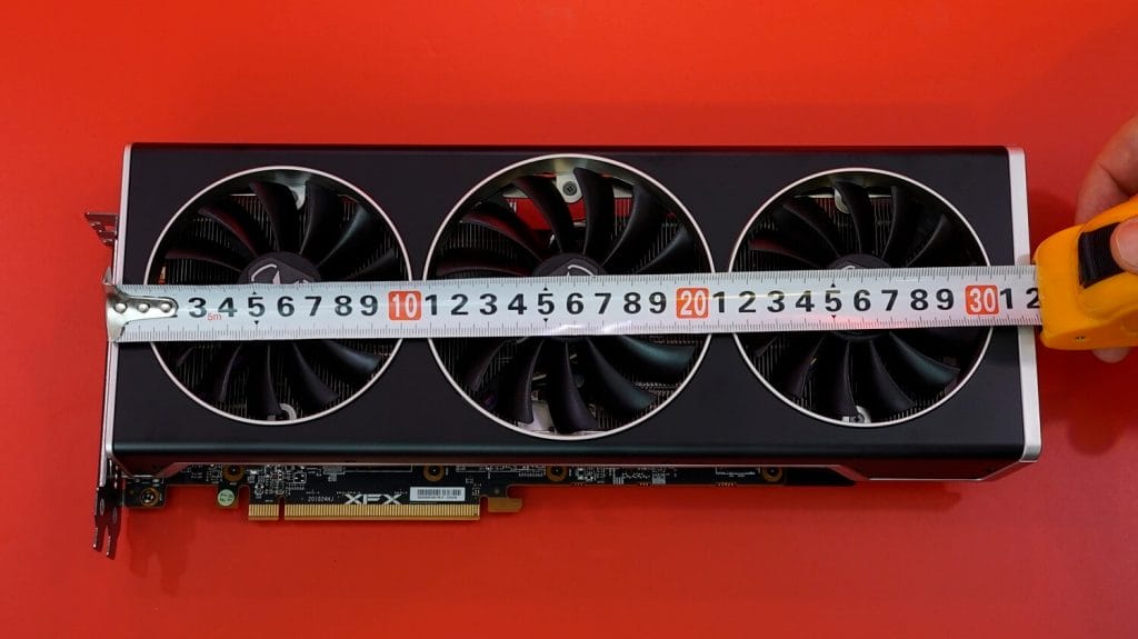 XFX RX 6700 XT, ekran kartı oldukça uzun bir tasarıma sahip. Ekran kartının 32.2 cm uzunluğa, 12.4 cm’de genişliğe sahip. Ekran kartı, istediğiniz her kasaya ne yazık ki sığmıyor. Kasa seçeceğiniz zaman GPU’nuzun uzunluğuna dikkatlice bakmalısınız.