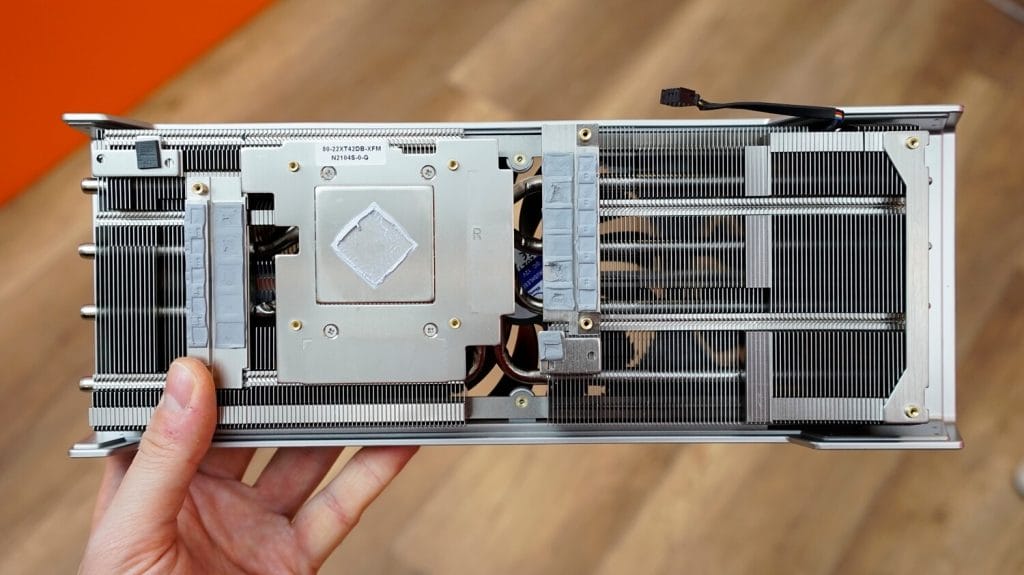 Soğutucu blok ise iki kısımdan oluşuyor. 4 adet ısı borusu diğer metal soğutmanın içerisinden dolaşırken, çift bloğun da kalın olduğunu söyleyebiliriz. Bu da kartın ağırlığını etkiliyor.