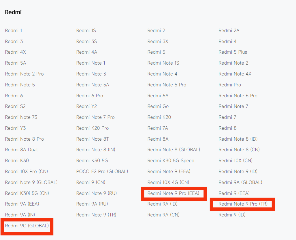 Listeye baktığımız zaman markanın güncelleme almayacak akıllı telefonlara Mi modellerini ve Redmi Note modellerini eklediğini görüyoruz. Tam liste hemen aşağıda yer alıyor.
