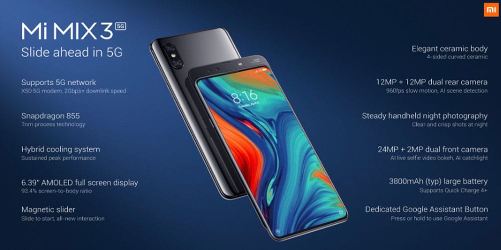 Hali hazırda bulunan Mi Mix 3'ün yeni kablosuz teknolojisi 5G destekleyen bu modeli, büyük bir ekran gövde oranına ve sürgülü ön kameraya sahip. Kamera kullanım anında ortaya çıkan güçlü bir mekanizma ile kullanılabilecek.