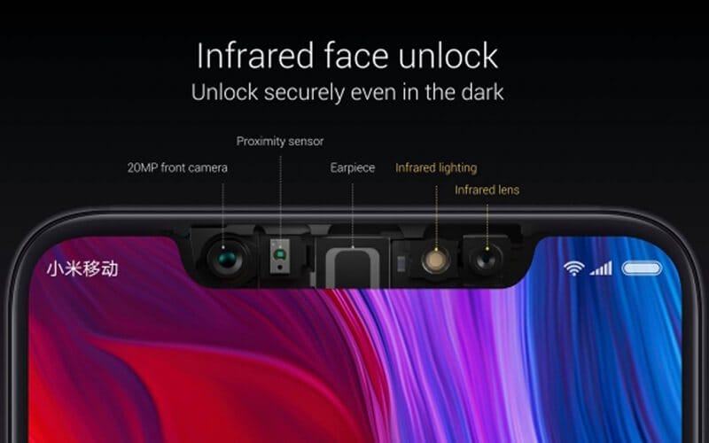 Ön kısımda 20 Megapiksel çözünürlüğünde bir kamera kullanan Xiaomi Mi 8 kızılötesi sensörlerle destekleniyor. Bu özellik ile düşük ışıklarda dahi yüksek performanslar veriyor. Ayrıca cihazda var olan yüz tanıma kilidinin daha stabil ve hızlı çalışmasını sağlıyor.