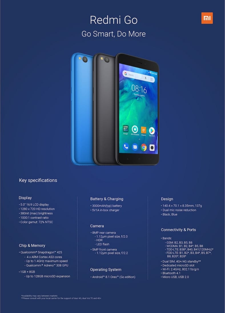 Xiaomi yeni modelinin adını Redmi Go Edition olarak belirledi. Cihazın özellikleri ve tasarımı merak edilirken şuan hemen hemen hepsi elimizde mevcut. Gelin sizi hiç bekletmeden cihazın özelliklerine geçelim.