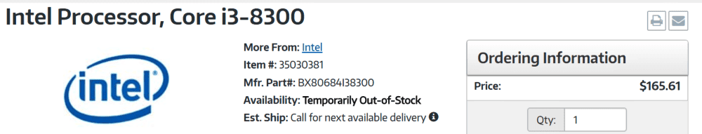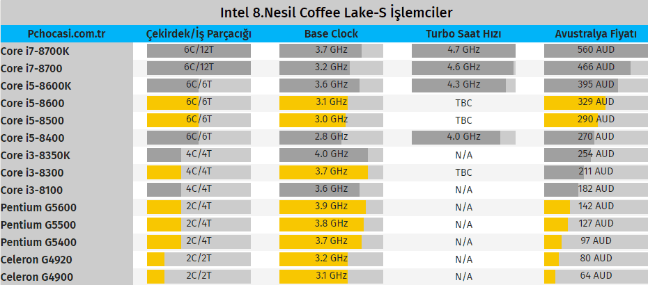 Tüm bunlara ek olarak Overclock edilemeyen Intel i5-8600 modeli muadil versiyonlarına göre biraz daha düşük modeller ile satılacak. Bu SKU'ya Core i5-8500 ve i3-8300 işlemcileri de katılacak.
