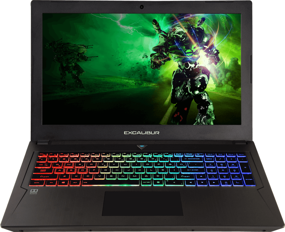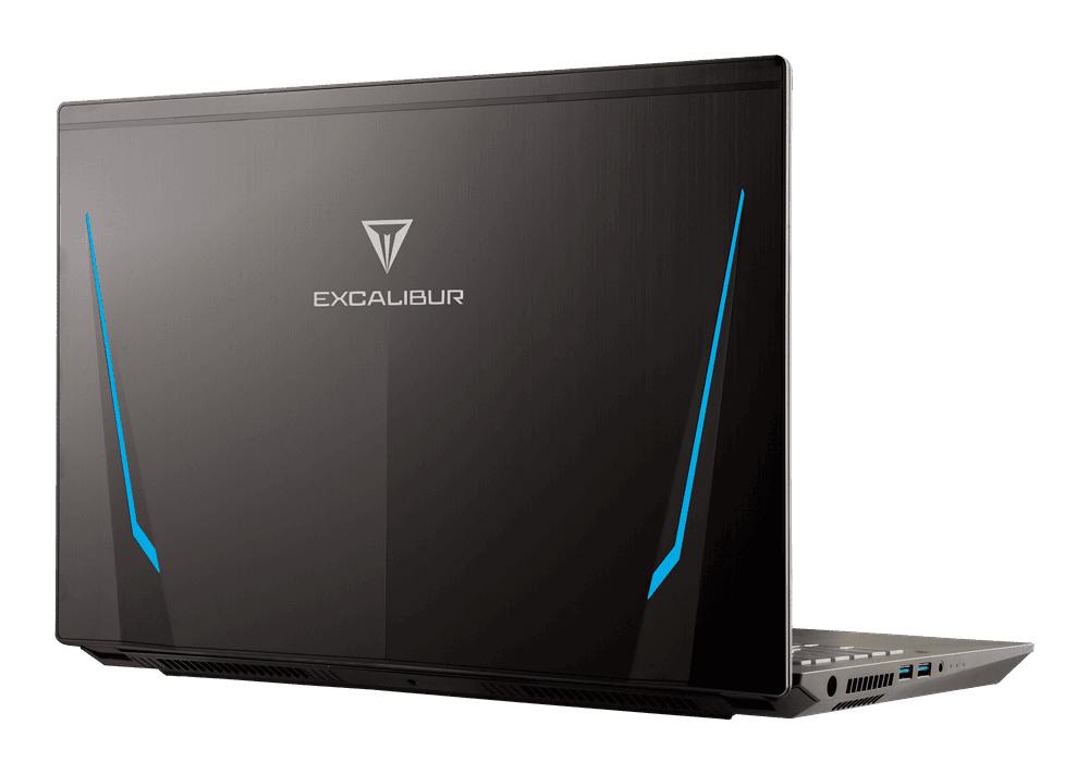 Fırçalanmış alüminyum yüzeyi ile birlikte gelen laptop, arka panelinde Excalibur logosu ve yazısının yanı sıra, sağ ve sol tarafında da mavi LED şerit aydınlatması içeriyor. Ön paneline baktığımızda RGB aydınlatmalı klavyesi, yine Excalibur ibareli ekranı göze çarpıyor.