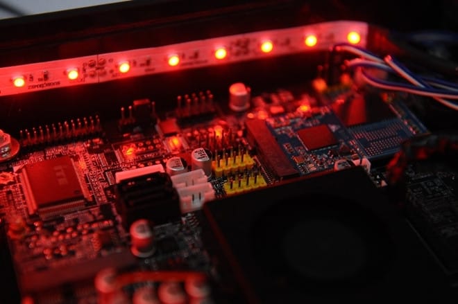 Zira yeni bir anakart geliştirildiği iddia edilen bu modeli karşılaştırdığınızda, bir fark olmadığını görebiliyorsunuz. Sadece bir kaç pleksi tabakaya logolar yerleştirilerek, üstüne ucuz şerit ledler döşenmiş ve sonuç ortaya çıkmış.