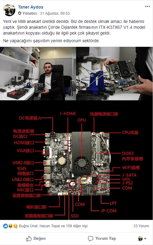 Not: Bu haberin içeriğini "Yerli ve Milli anakart yayında" haberleri dönmeye başladığı ilk günden beri sizlerle paylaştık. Hatta ilk detaylar ortaya çıkmadan önce destek olacak postlar dahi paylaştık. Fakat yerli ve milli anlayışlar çok farklı olduğu için, bir kez daha hayal kırıklığı ile sonuçlar hüsranla doldu.