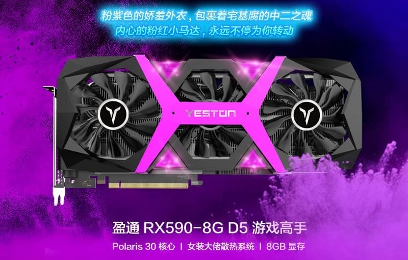 Çinli ekran kartı üreticisi olan Yeston, yeni geliştirmiş olduğu RX 590 Game Ace modelini duyurdu. Ekran kartı alıştığımız görsellikten ziyade üzerinde siyah ve pembe renklerin bulunduğu bir tasarım ile birlikte geliyor. Ayrıca RX serisi için üretmiş oldukları ilk üç fanlı ekran kartı.