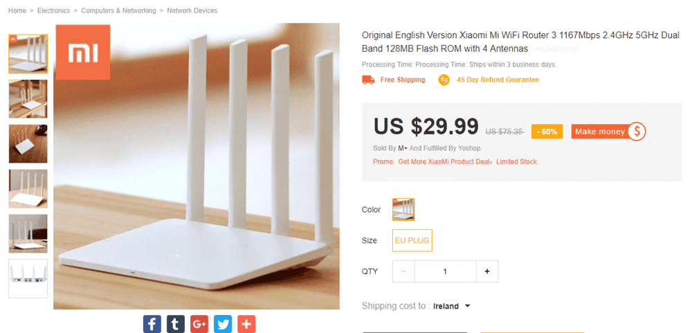 Bir diğer seçtiğimiz ürün ise internet konusunda sıkıntı yaşayan arkadaşlarımız için. Yakışıklı olduğu kadar, performansı ile parmak ısırtan Xiaomi Mi WiFi Router 3 modeli. Şuanda YoShop üzerinde 29.99 dolardan satılan bu ürün, indirim sonrası 75 dolara geri çıkacak.