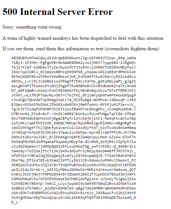 Yukarıdaki açıklamada ise: "Üzgünüz, bazı şeyler yanlış gitti, yüksek eğitimli maymun bir ekip, bu durum ile başa çıkmak için görevlendirilmiştir. Eğer aşağıdaki hatayı görüyorsanız, onlara bu bilgileri gönderebilirsiniz." açıklaması da dikkat çekti.