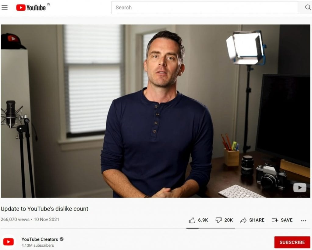 Videolarda halen daha beğenmeme düğmesi yer alacak, izlediğiniz bir videoyu beğenmediğiniz zaman bu düğmeyi kullanabileceksiniz fakat platform genelinde siz ve diğer izleyiciler mevzubahis videonun kaç kişi tarafından beğenilmediğini göremeyeceksiniz. İstatistikler yalnızca YouTube Studio aracılığıyla içerik üreticisine analizlenecek.