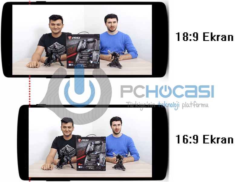 Normalde olan 16:9 oranlı görüntülerin kenarlarını genişleterek 18:9 oranına taşıyor, yani 18:9 ekranlı bir telefonda PC Hocası'nı izlerseniz Taner ve Furkan'ı olduğundan daha şişman görebilirsiniz. Hatta obez gibi görebilmeniz bile olası, bunun sebebi ise 16:9 formatındaki videoların daha küçük çerçeveye göre hazırlanması, bu sebepten ötürü olarak Y (yatay) eksenindeki bütün görüntüleri biraz daha geniş görüyorsunuz.