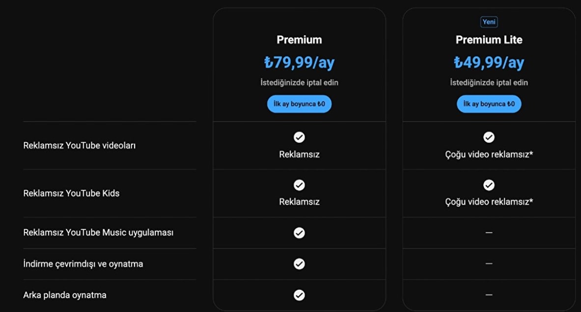 Premium Lite önce Avrupa’da test edilmişti. Sonra ABD, Almanya, Tayland gibi ülkelere yayıldı. Şimdi ise Türkiye dahil birçok ülkede aktif. Genişlemeye de devam ediyor. YouTube böylece hem tam paket isteyenlere hem de sadece reklamlardan kurtulmak isteyenlere hitap etmiş oluyor.