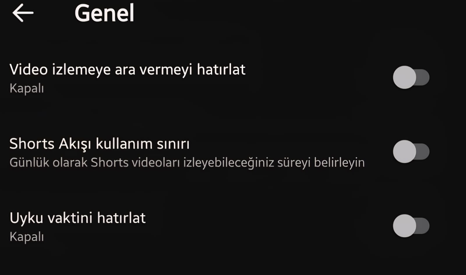 YouTube Shorts'da çok vakit geçiriyorum buna sınır koymam gerek diyorsanız ayarlardan izleme sınırınızı belirleyip daha bilinçli kullanım sağlayabiliyorsunuz.